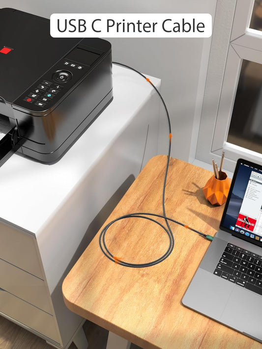 USB B to USB C 6.6 FT Printer Cable, MIDI Cable, Nylon Braided USB B to C Cord for Macbook Pro/Ai...