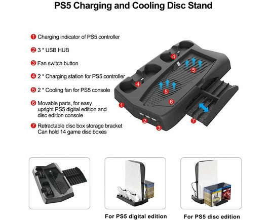 Vertical Cooling Stand with Game Storage Slot for PS5 DE/UHD (-P5-010-2